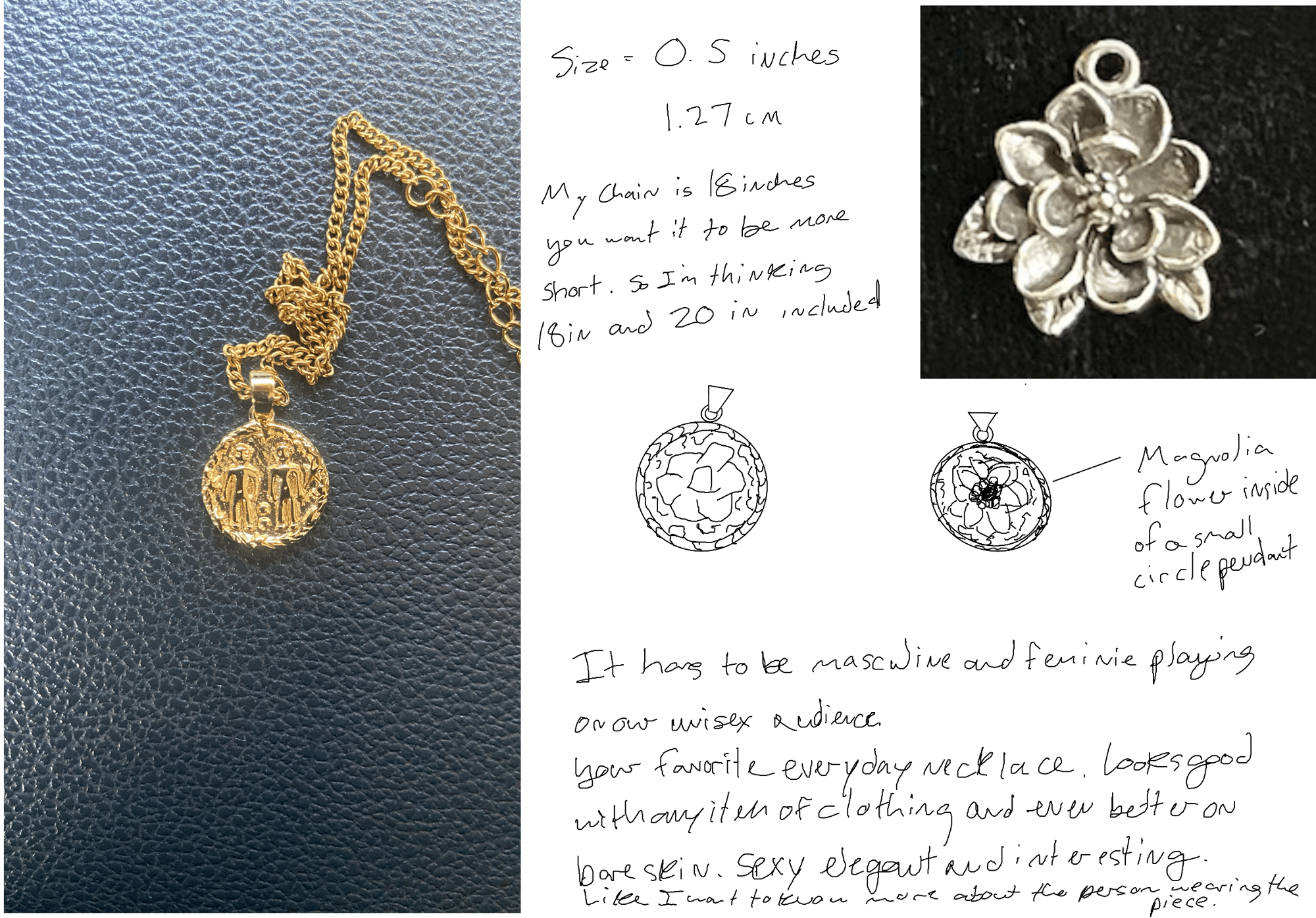 This necklace is paying homage to her as well as my home state. The Magnolia is the official flower of Mississippi. Its beautiful white petals and sturdy green leaves are the perfect balance between strength and gentleness.